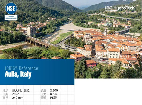 2022年,IBB16®—非开挖无缝压力管道修复的领先系统,在 卑尔根安装。奥拉是位于托斯卡纳大区马萨-卡拉拉省的一个意大利市镇, 拥有10,957名居民。这个成功修复的项目是对一条长2.500DN240mm的PE管 进行修复。该管道的工作压力为6巴。