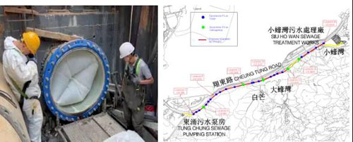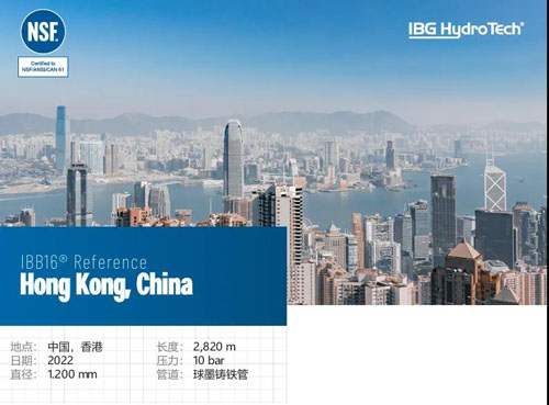 2022年,IBB16®—非开挖无缝压力管道修复的领先系统,在香港 安装。香港渠务署批出工程合约编号DC/2021/06「为东涌至小蚝湾现 有的加压污水管进行修复改善工程」,工程包括修复位于东涌污水泵 房至小蚝湾污水处理厂之间一条长约6.2公里、直径1200毫米现有的 加压污水管,以及进行附属工程。我们对其进行了修复工程.