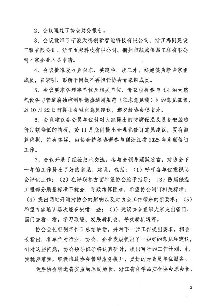 浙江省防腐保温与设备安装管理协会五届二次理事会
