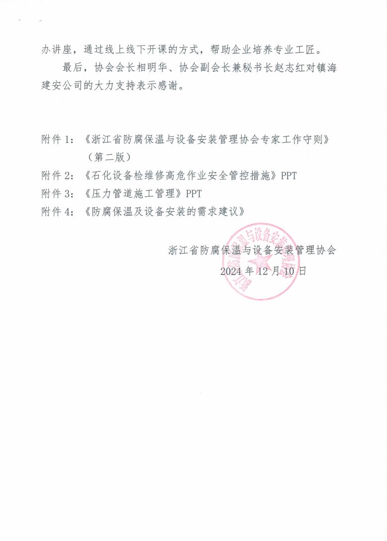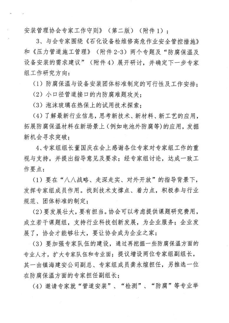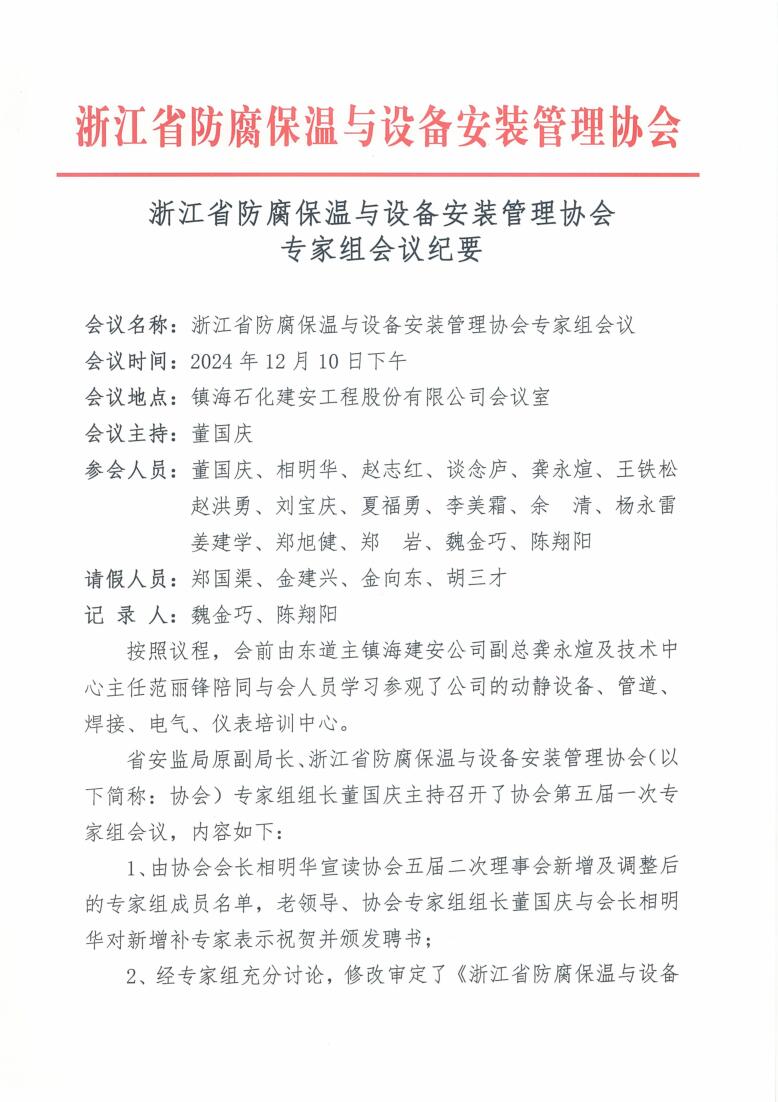 浙江省防腐保温与设备安装管理协会专家组会议纪要