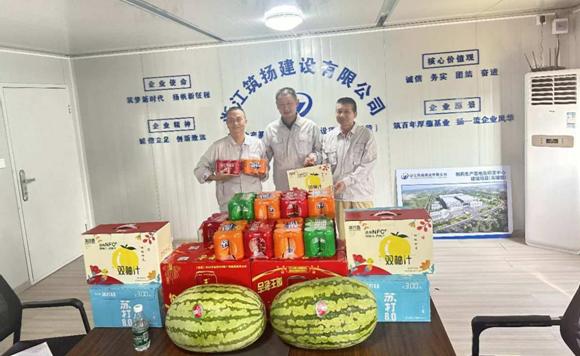 特别值得一提的是,赵志红董事长在强调项目进度的同时,也不忘关心一线员工的健康与福祉。他们为工人们准备了防暑降温物资,用实际行动传递了公司对员工的关怀与支持。这种关怀并非偶然之举,而是华建公司长期坚持的企业文化和人文关怀精神的体现。