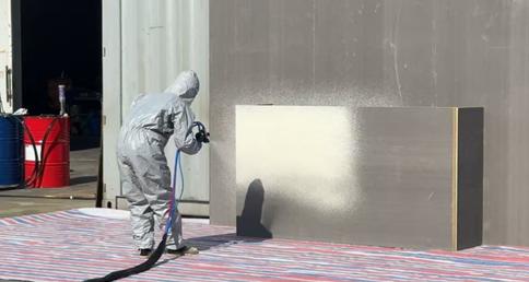 在调研现场,浙江省防腐保温与设备安装管理协会会长、华创公司总经理相明华向调研组详细介绍了与南京林业大学的罗振杨教授共同研发的超临界CO2辅助发泡喷涂设备。该技术通过将液态CO2加压至超临界状态,替代传统化学发泡剂及挥发性有机溶剂,实现了CO2的精确计量和恒定输出,施工应用方便,同时显著扩宽了常规聚氨酯硬泡喷涂施工的低温环境限制。调研组现场观摩了使用超临界喷涂设备和传统设备进行的板材喷涂对比试验,对使用超临界喷涂设备的喷涂样块给予了高度评价。