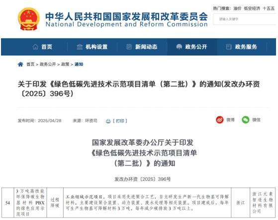 热烈祝贺元素智造项目入选“国家发改委绿色低碳先进技术示范项目”