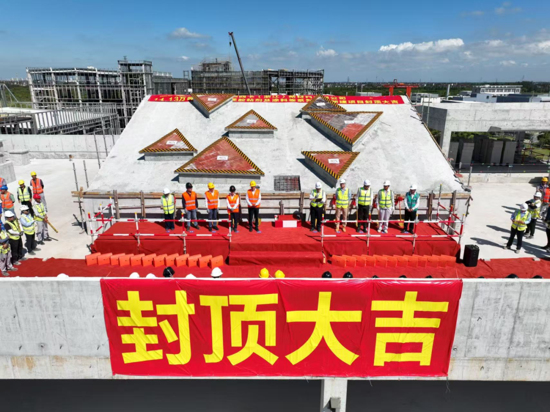 8 月 27 日上午 9 时 28 分,西卡 (浙江) 新材料有限公司年产 14.13 万吨高性能环保胶粘剂及涂料等系列产品新建项目举行了隆重的主体结构封顶仪式。与此同时,该项目实现 了40 万安全人工时的突破,这两大里程碑事件标志着项目正式全面进入装饰装修及工艺安装阶段,为后续竣工投产奠定坚实基础。