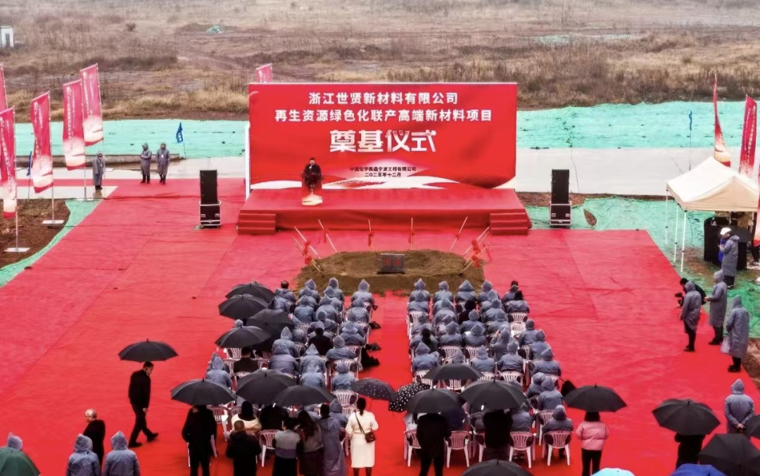 2025 年 12 月 24 日上午 10 时许,浙江世贤新材料有限公司再生资源绿色化联产高端新材料项目开工奠基仪式在项目现场隆重举行。活动现场彩旗飘扬、礼炮齐鸣,洋溢着热烈喜庆的氛围。