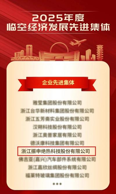 新春传捷报,奋进正当时!在 2026 年秀洲区马年 “新春第一会”—— 全区三级干部大会暨建强主城区 “三大行动” 动员部署会上,浙江振申绝热科技股份有限公司 凭借在临空经济发展中的突出贡献、硬核的技术创新实力和亮眼的产业发展成果,成功获评2025年度秀洲区临空经济发展先进集体(企业先进集体),这份荣誉既是秀洲区委、区政府对振申绝热发展的高度肯定,更是企业深耕绿色绝热材料赛道、赋能区域临空产业升级的有力见证!